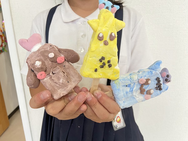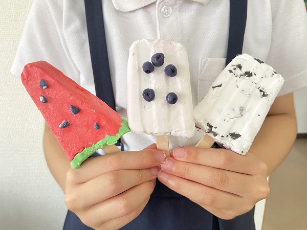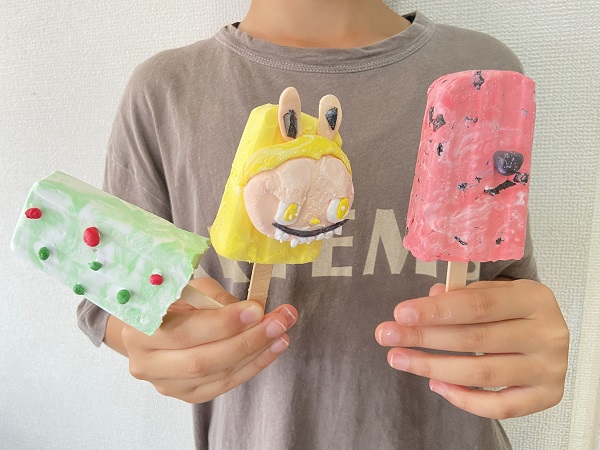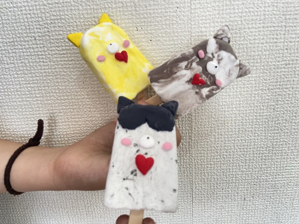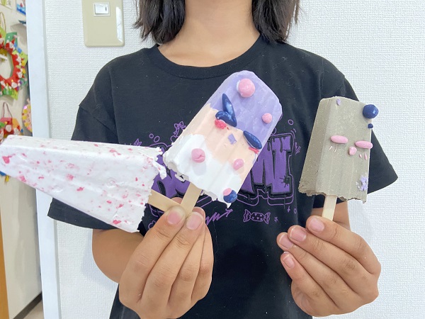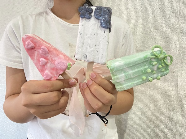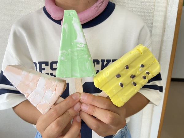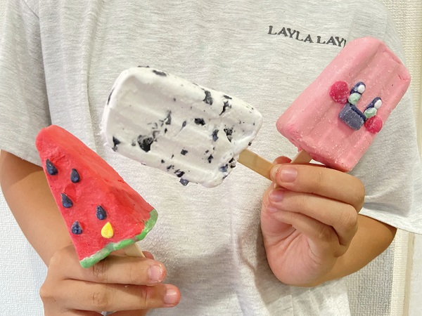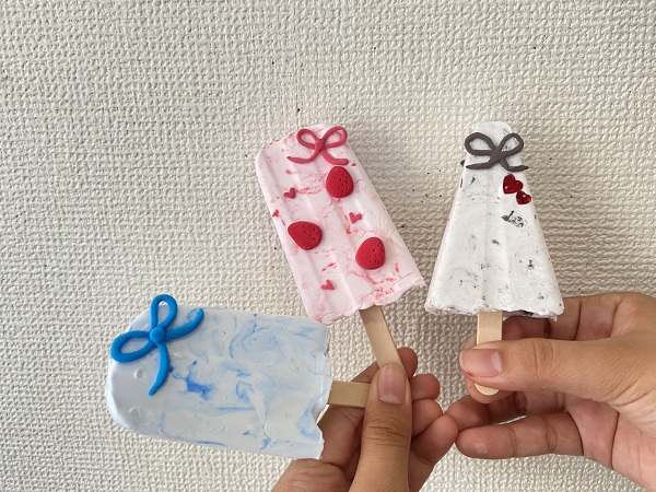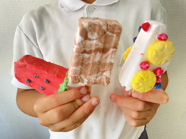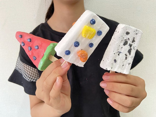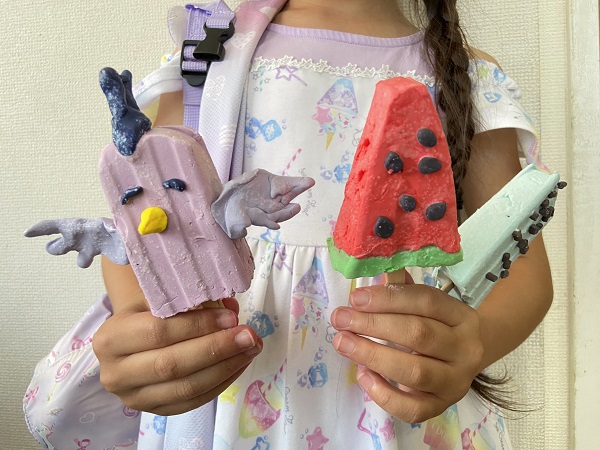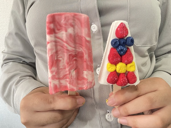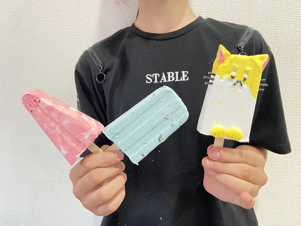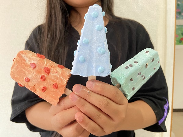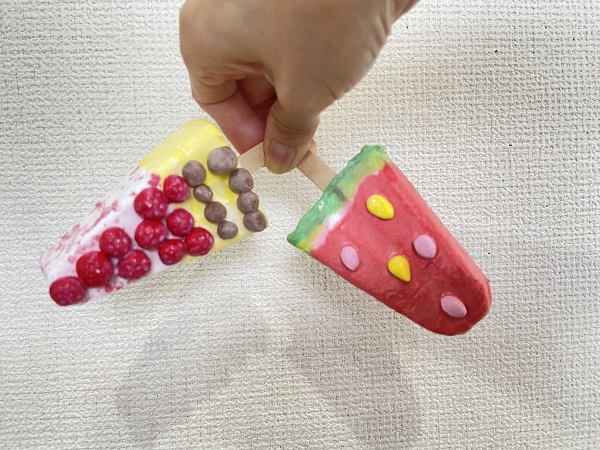 冷や冷やアイスキャンディー実際のアイスキャンディーメーカーを使って、紙粘土で実物サイズのフェイクアイスキャンディーを作りました。
